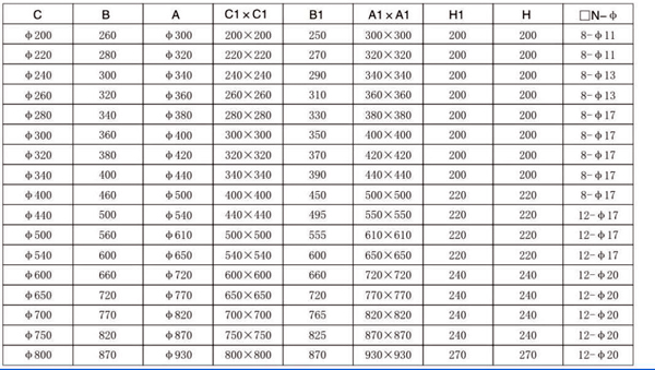 插板阀主要外形及连接尺寸(mm):